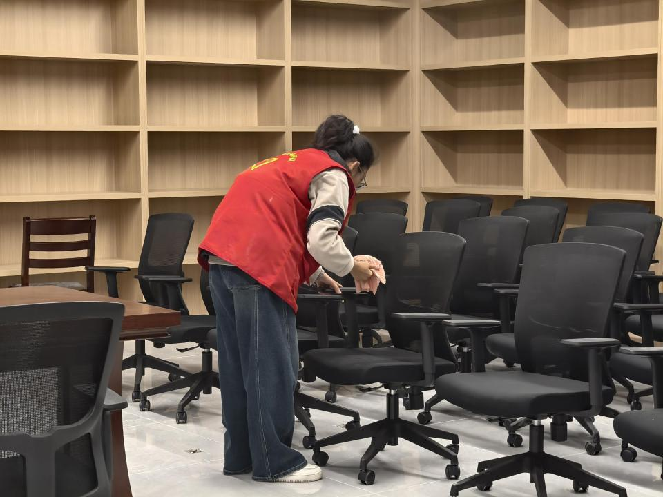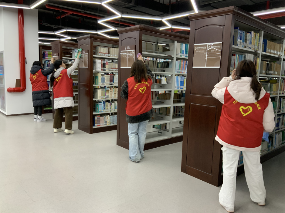 大家用双手拂去尘埃,用行动守护书香,生动诠释了新时代青年党员与青年骨干甘于奉献、勇于担当的精神风貌,为校园文化建设注入了温暖而持久的力量。