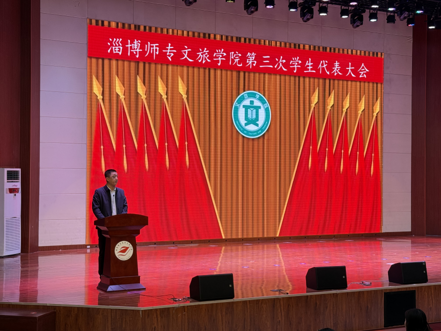 为引导青年踔厉奋进、勇毅前行,加强和改进新时代学生会工作,12月17日,淄博师专文旅学院第三次学生代表大会在文奂楼学术报告厅成功举行。学校团委社团部部长孙芃芃、学院党总支书记高馨、院长王松江、学院党总支副书记田志升出席会议,来自全院的140余名师生代表参加了会议。会议由学院团委书记娄敬主持。