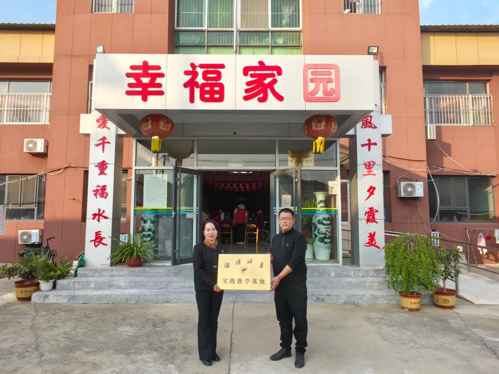 活动现场,文旅学院党总支书记高馨与老年公寓院长共同为“大学生实践基地”揭牌。该基地是学院拓展党建实践阵地、深化校地合作、构建实践育人长效机制的关键举措,为学生搭建了走出课堂、服务社会的实战平台。