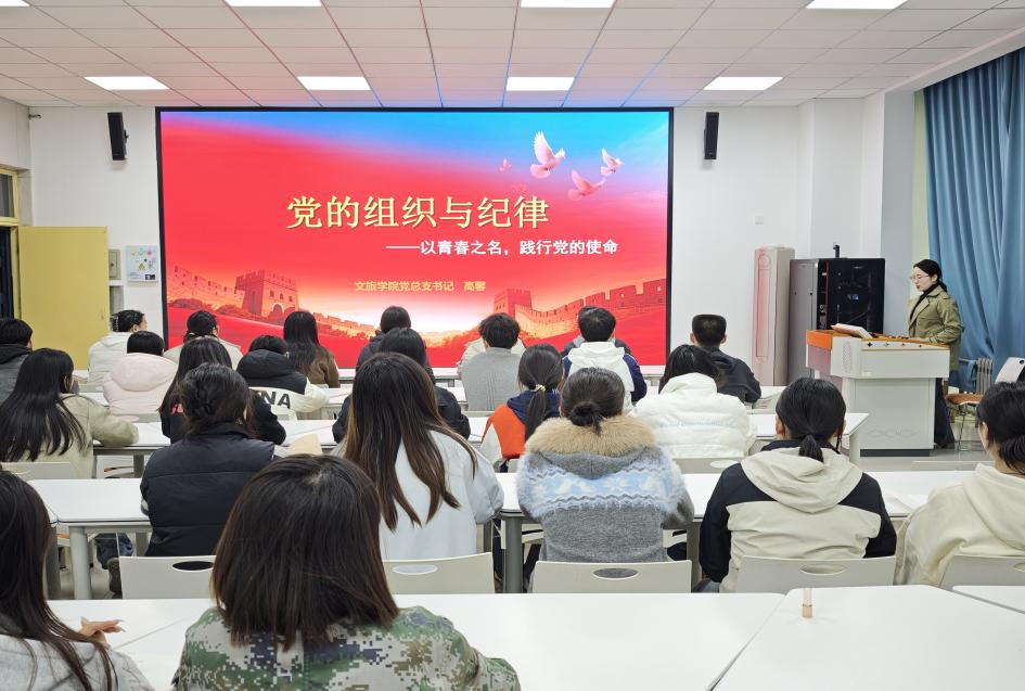 为加强入党积极分子的思想教育和纪律意识,引导青年学生筑牢理想信念根基,10月24日,文旅学院党总支书记高馨以“党的组织与纪律”为主题,为入党积极分子开展专题培训。