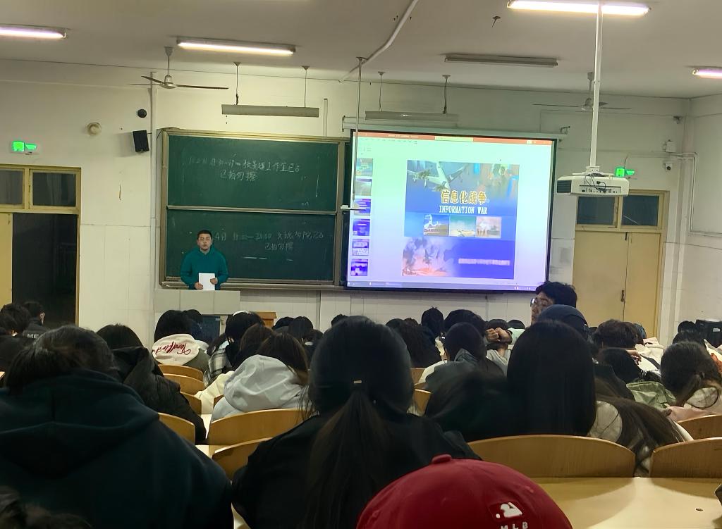 为帮助新生筑牢国防观念、夯实爱国主义思想根基,近日,文旅学院组织2025级新生进行军事理论课的学习,本次课程聚焦“信息化战争”这一主题,由学院教师宁川川主讲。