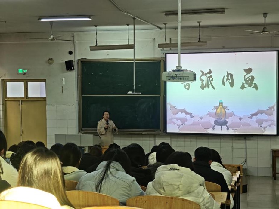 讲座中,郑玉慧由浅入深,系统地阐述了鲁派内画的起源、历史脉络、艺术流派与传承谱系。并重点介绍了以张广庆先生为代表的老一辈内画大师如何用精湛的技艺和精益求精的匠人精神,开拓了鲁派内画的辉煌之路。同时,郑大师还展示了鲁派内画的代表作品,同学们被各式各样的内画载体深深吸引,纷纷就技艺特色、传承发展等话题踊跃互动,现场学术氛围热烈。