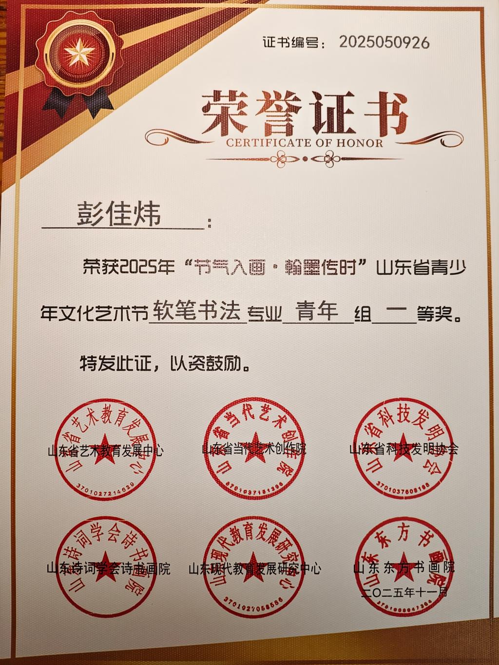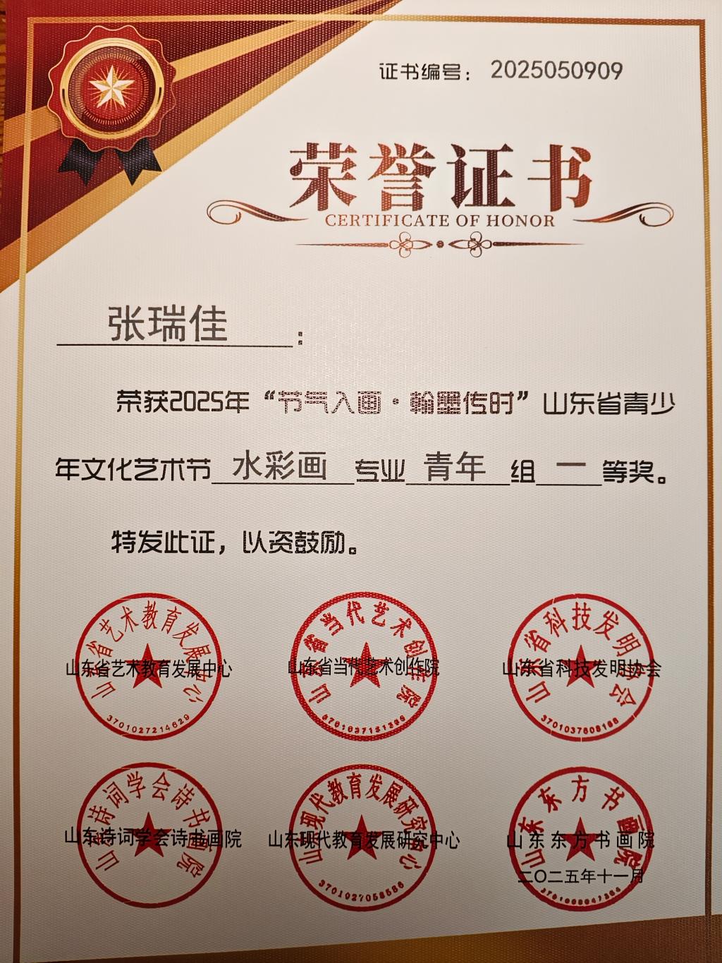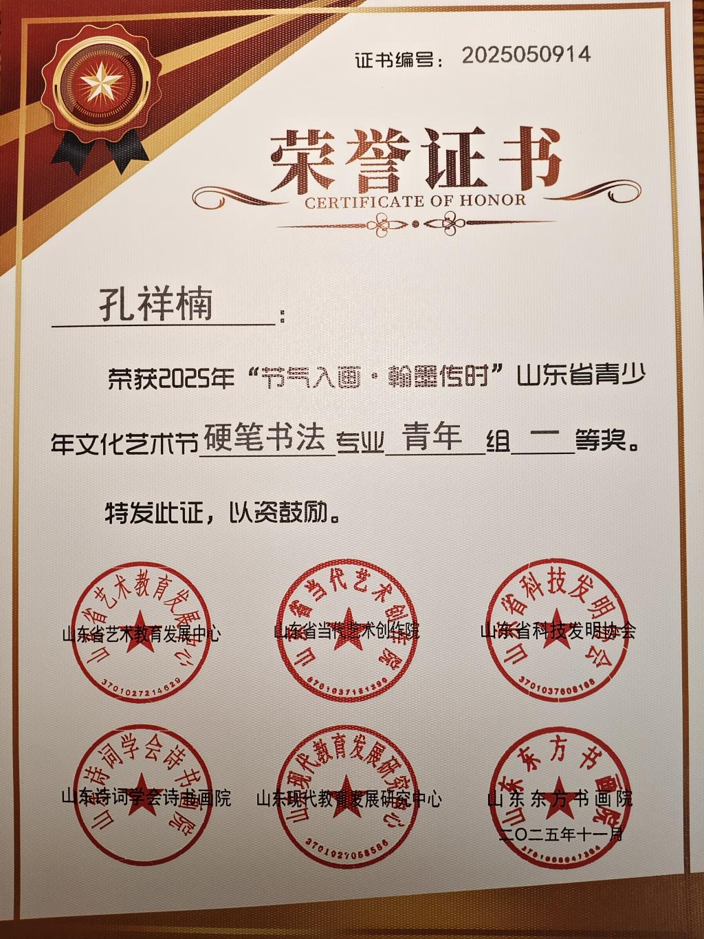 近日,2025年 “节气入画 翰墨传时” 山东省青少年文化艺术节获奖名单正式揭晓。文旅学子凭借深厚的专业素养与扎实的创作功底奋勇争先,共斩获一等奖5项、三等奖2项,娄敬、刘雨翀两位教师获评“优秀指导教师一等奖”,用实力彰显了学院文化育人的丰硕成果。