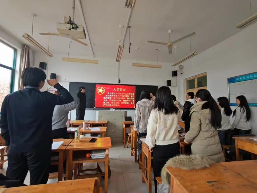 评议环节严格执行相关规定,各团支部通过“智慧团建”系统有序开展团员教育评议录入工作,优秀等次团员数量严格控制在参评团员人数的30%以内。评议结束后,上级团组织及时完成线上审批,确保评议数据准确有效。会议最后,全体团员面向团旗庄严宣誓,重温入团誓词,铿锵有力的誓言回荡在会场,进一步坚定了团员们不忘初心、牢记使命的信念。