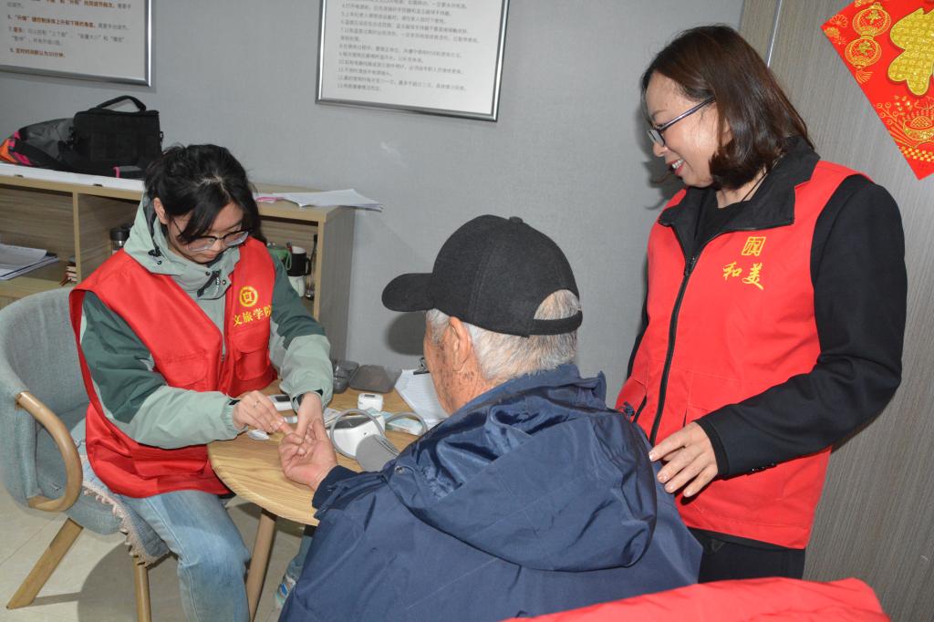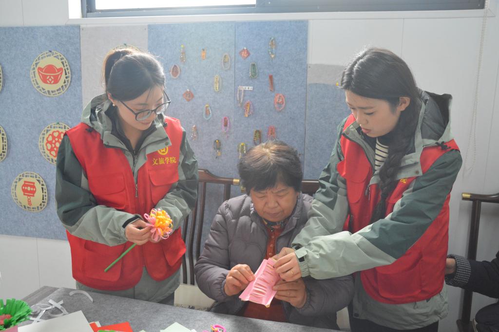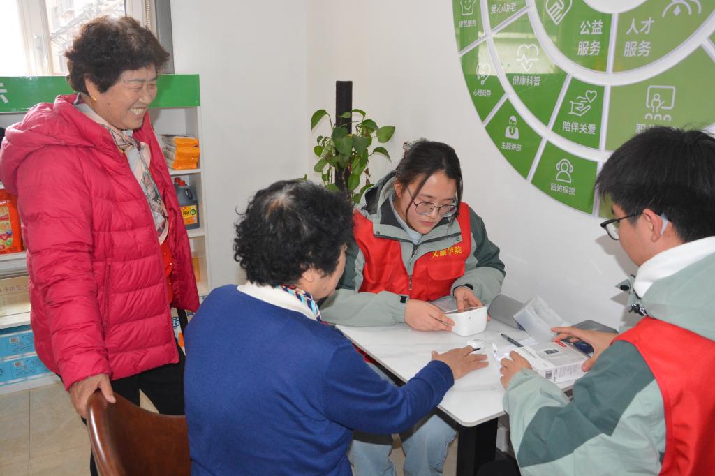 活动现场,文旅学院的师生结合学院专业特色,发挥康养专业优势,为社区居民免费测量血压、血糖、血氧,细致讲解日常饮食、健康养生的注意事项;组织社区居民开展手工作品制作等趣味活动,丰富居民的文化生活,现场氛围热烈暖心。